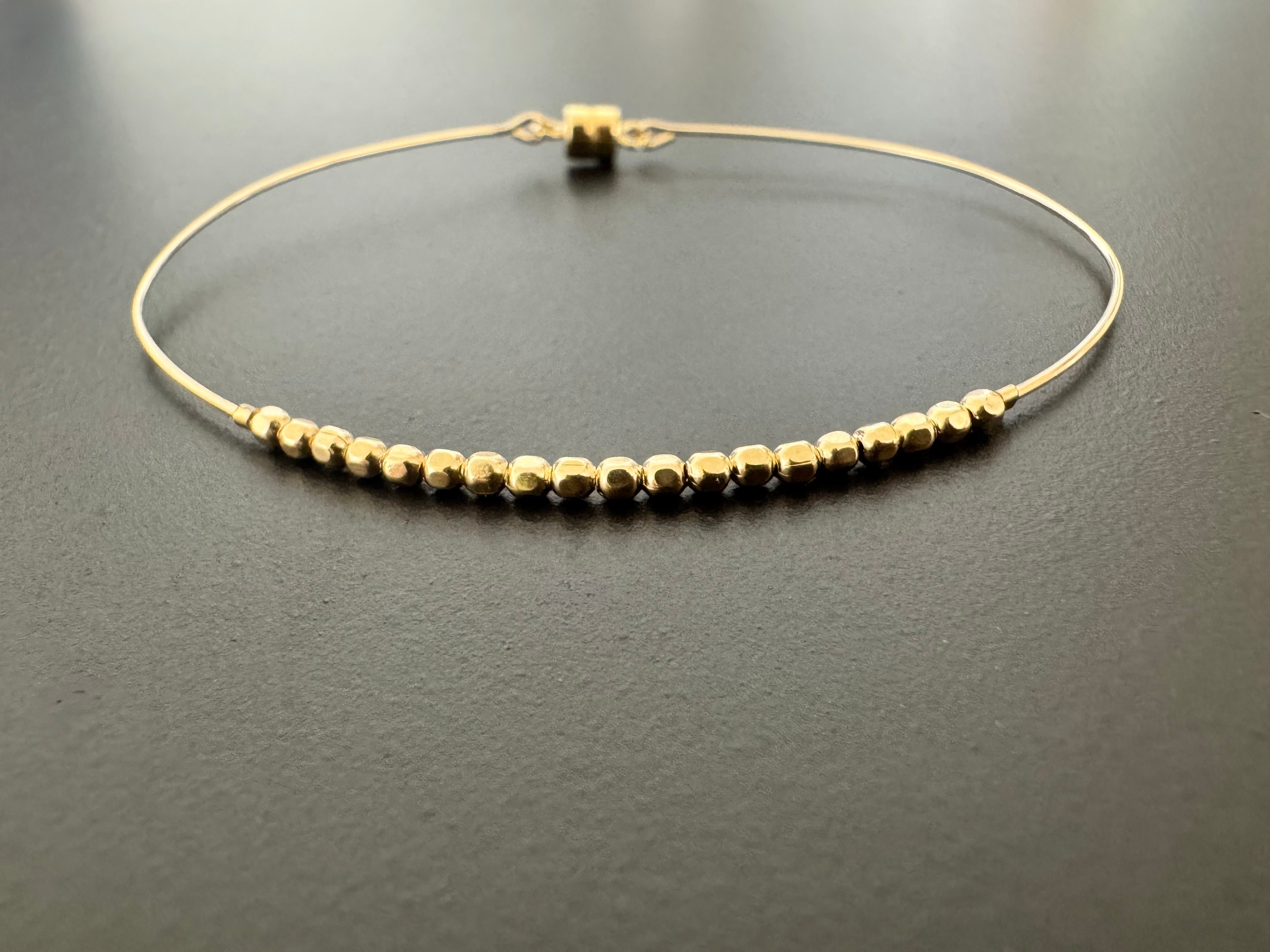 14K Gold-Filled Adjustable Bracelet Timeless, elegant, and effortlessly wearable—this 14K gold-filled bangle is designed to feel like a second skin. With its adjustable thread closure, it offers the perfect fit...