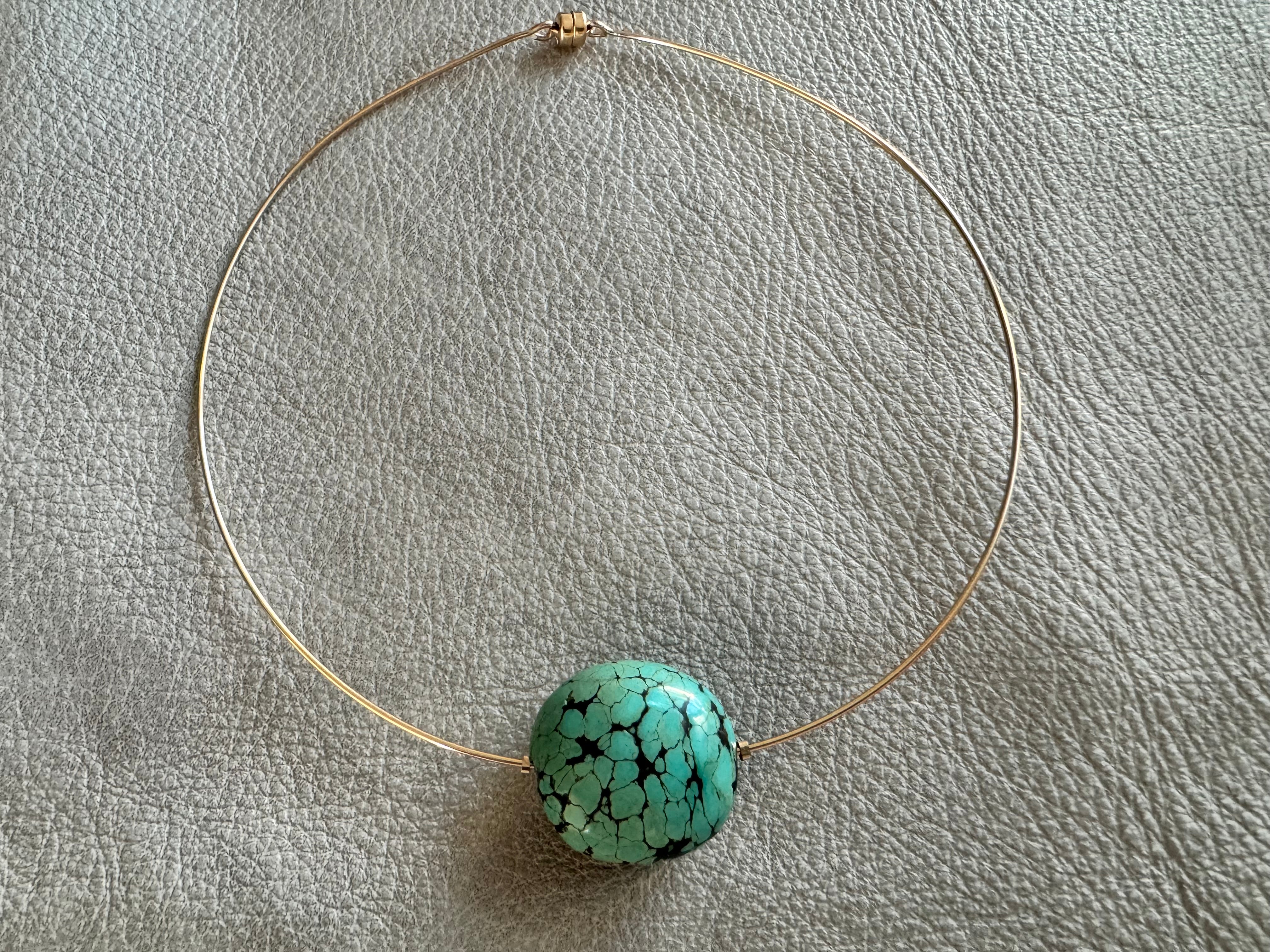 Timeless elegance to your style with this gold-filled choker featuring a striking turquoise bead, a gemstone known for promoting calm and clarity. The magnetic clasp ensures easy, secure wear, while the...